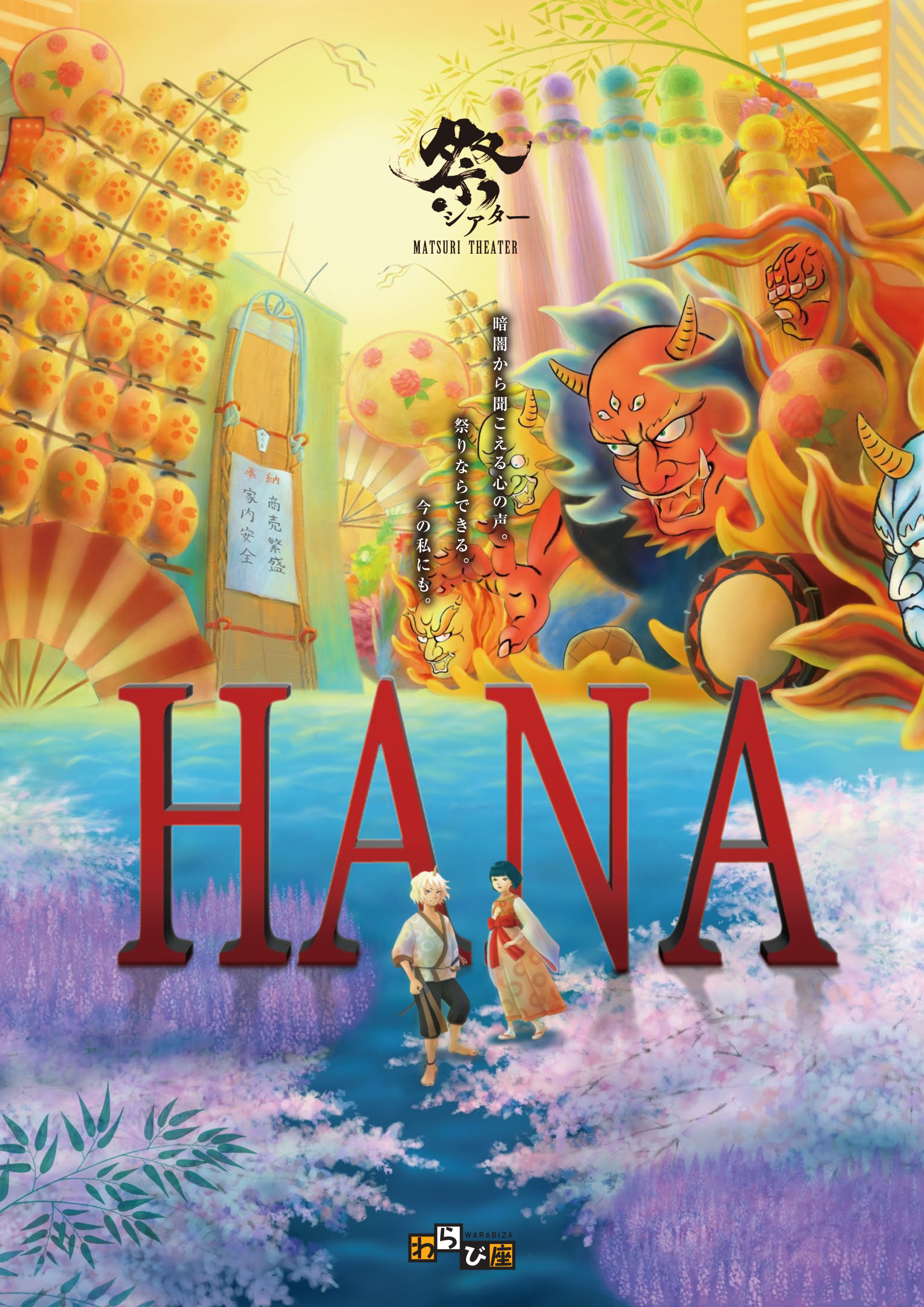 民族伝統をベースに、ミュージカルや舞踏劇、 一つのテーマを歌や踊りで構成する劇団独自の歌舞集など幅広い表現方法で老若男女が楽しめる作品を生み出してきたわらび座。そんなわらび座が新たに送るのが、観客が太鼓や提灯、うちわで参加できる祭シアター「HANA」である。脚本は劇団扉座主宰、「スーパー歌舞伎II ワンピース」などを手掛けた横内謙介が新たに書き下ろし、振付にはラッキィ池田・彩木エリ夫妻が名を連ねる。