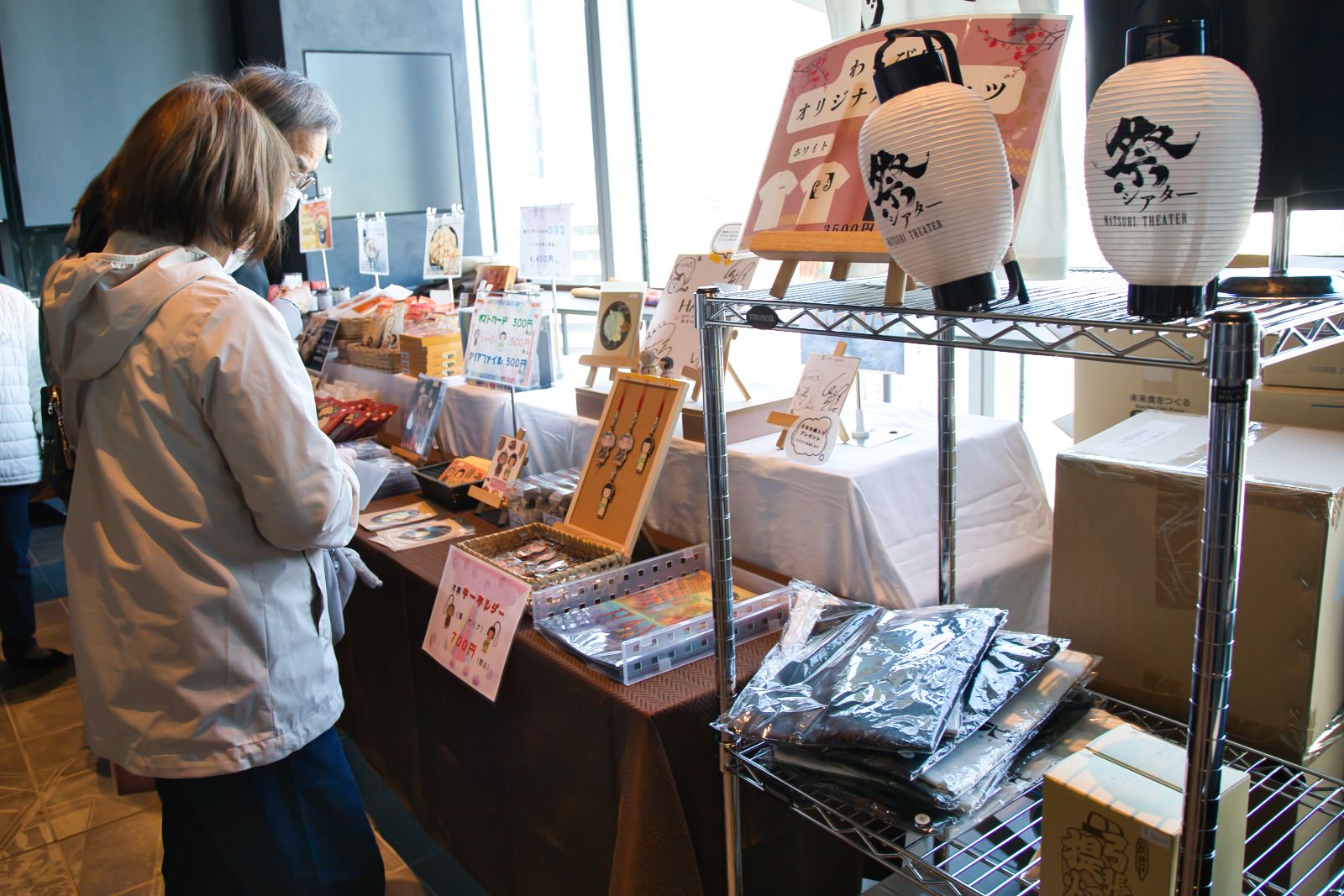 物販スペースには、秋田で生まれた田沢湖ビールをはじめとした、秋田の名産品やわらび座のオリジナルグッズが並ぶ。わらび座は専用劇場や温泉宿泊施設を擁するART VILLAGE・あきた芸術村を設立しており、この田沢湖ビールもその一環として生産された、わらび座と縁深い商品。わらび座の公演を観劇するなら、ぜひ手に取ってもらいたい一品だ。こういった物産展気分を劇場で味わえるのも本作ならではだろう。