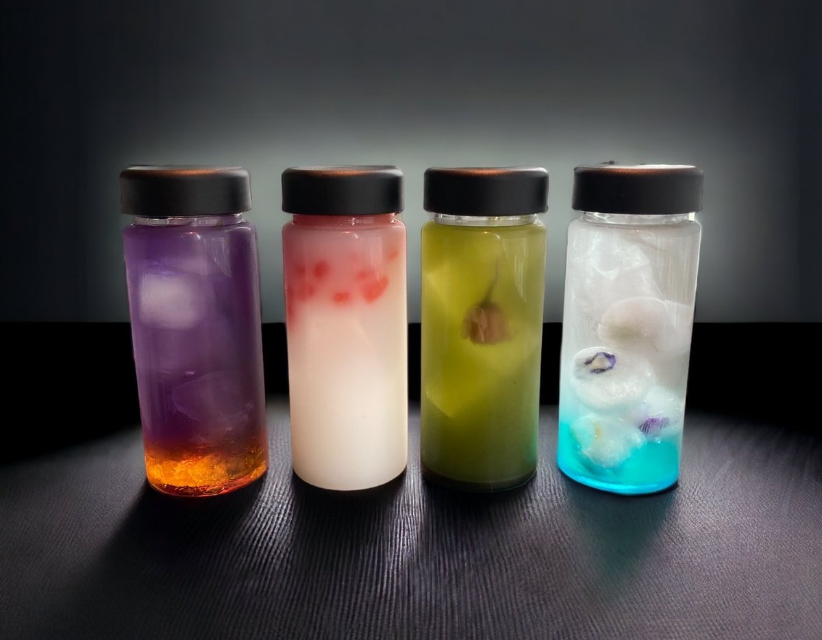 『パラサイト』公演時に制作したドリンク3種。「暗渠 ―あんきょ―」は中央。