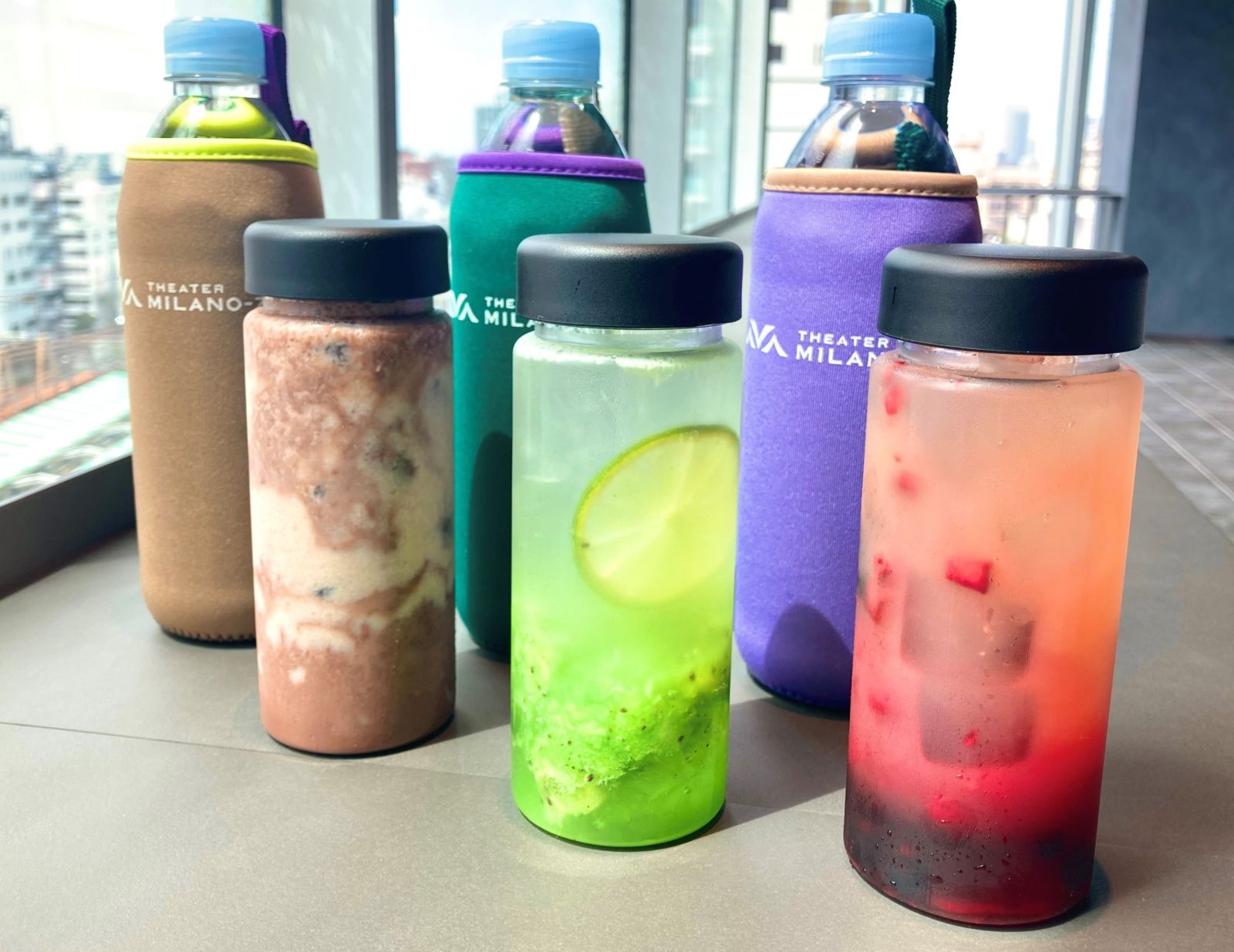 <大須賀> ボトルの生産が追いつかなくなったようです。今は新しいデザインのボトルと以前のデザインのボトルを、公演によって使い分けています。実は『ブルーマングループ 2025』は両方使っていて、ドリンクの種類や内容によって使い分けています。(※注 『ブルーマングループ 2025』公演中にインタビューを実施しています。)