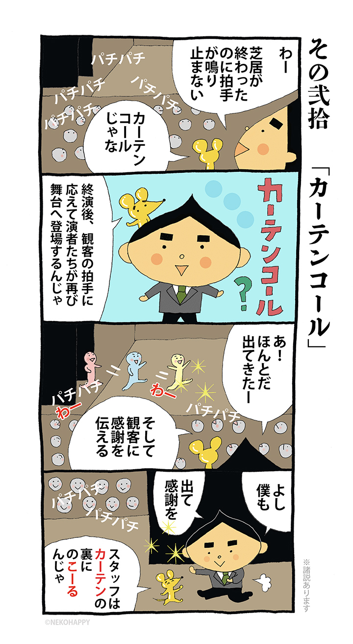 劇場をより身近に感じていただく為に、舞台用語、業界慣習、鑑賞マナー等を四コマでご紹介!